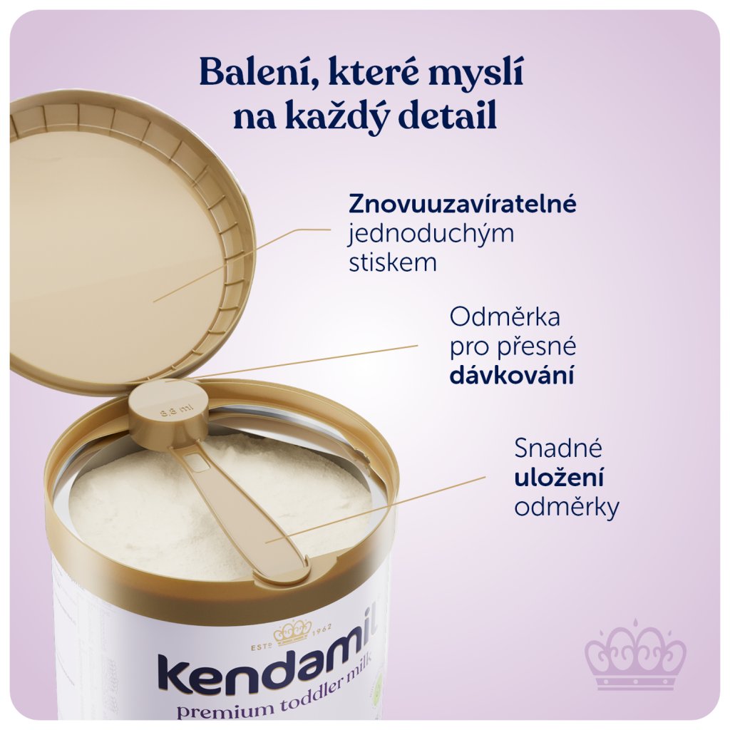 Důležité upozornění: Kojení je nejlepší způsob výživy Vašeho dítěte. KENDAMIL PREMIUM 4 HMO+ je určen pro výživu malých dětí od ukončeného 24. měsíce a měl by tvořit pouze součást smíšené a vyvážené stravy malého dítěte. Při krmení z lahvičky, zamezte nepotřebnému prodlužování kontaktu savičky se zoubky, zvyšujete tím riziko zubního kazu. Pečujte o hygienu ústní dutiny dítěte, především před spaním. Dodržujte pokyny pro přípravu, krmení a skladování, jinak ohrozíte zdraví dítěte. Není určeno pro děti do 12 měsíců.