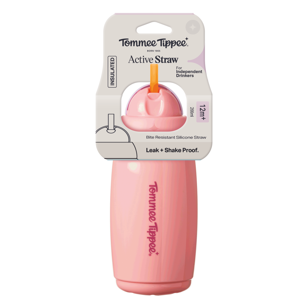 Tommee Tippee Active hrneček s brčkem, 266 ml, 12m+, růžový