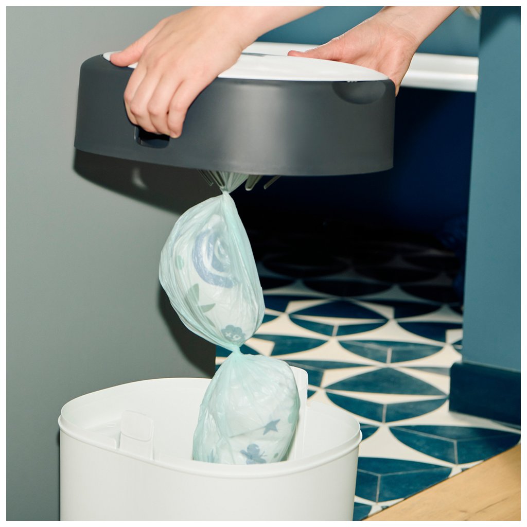 Nepropustná fólie s antibakteriální ochranou a příjemnou citrónovou vůní zabraňuje zápachu a zároveň ničí 99% bakterií. Systém pro odkládání použitých plen je nejméně 100× efektivnější v předcházení zápachu než sáčky na pleny.