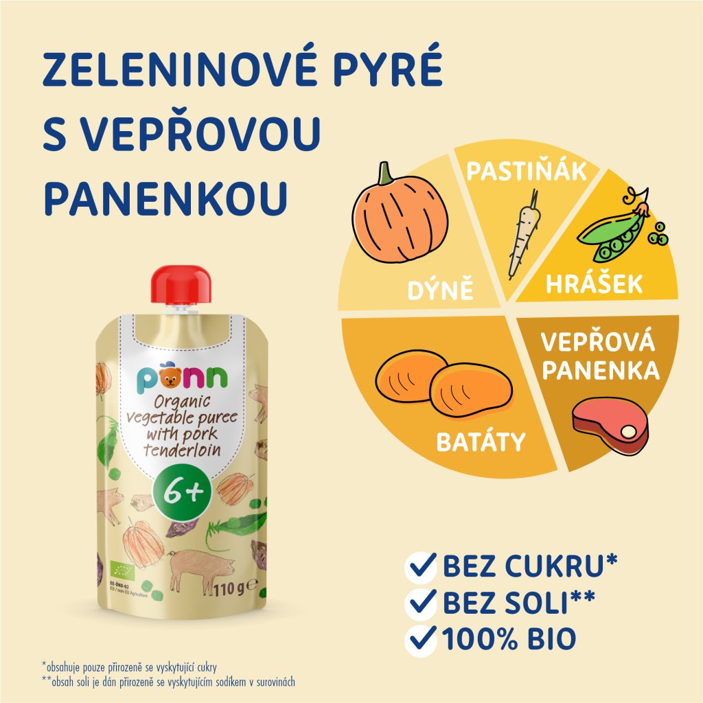 Dětské příkrmy jsou vyráběny ze striktně kontrolovaných 100% BIO surovin a vznikají ve spolupráci uznávanými pediatry. Neobsahují žádné konzervanty1 ani přidané cukry2. Pochutnat si na nich mohou děti od ukončeného 4. měsíce3, ale představují ideální svačinku i pro starší děti.