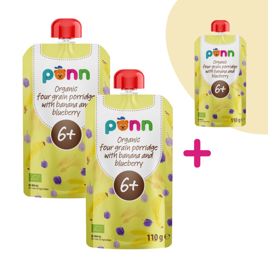 2+1 ZDARMA: SALVEST Põnn BIO Banán s borůvkou a obilnými vločkami (110 g)