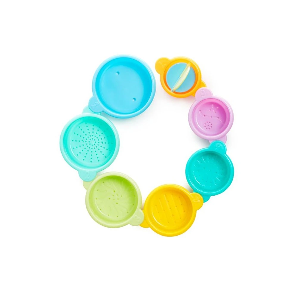 Munchkin Connect-A-Cup pohárky do vany přemění každé koupání na zábavné a interaktivní dobrodružství. Sada obsahuje 7 barevných pohárků, které lze stohovat, spojovat a vytvářet tak jedinečné vzory při nalévání vody. Jeden z pohárků je otočný pro ještě více hravých možností. Hra podporuje rozvoj jemné motoriky, koordinace ruky a oka a podněcuje dětskou kreativitu a zvídavost. Pohárky jsou plovoucí a snadno se drží malými ručičkami, ideální pro děti od 9 měsíců. Naučte děti pořadí od nejmenšího po největší, sledujte tok vody a objevujte principy příčiny a následku – Connect-A-Cup je tak skvělým nástrojem pro zábavné učení během každého koupání.Doplňkové parametry