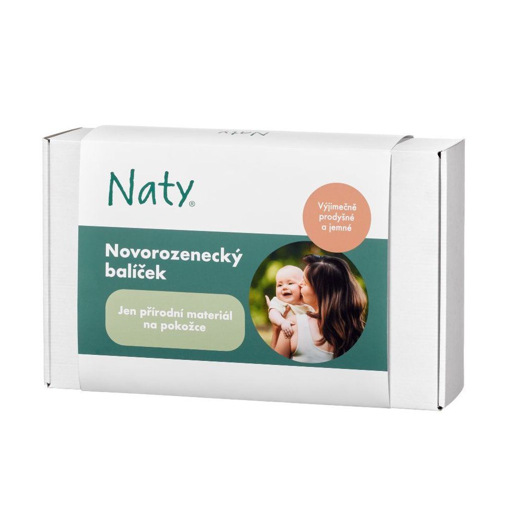 Naty představuje novorozenecký balíček - pět produktů, které miminko a maminka v prvních dnech opravdu ocení. Potěší každou maminku, pro kterou je zdraví na prvním místě. Pokožky se dotýká vždy jen přírodní materiál. Plenky i dámská hygiena Naty jsou výjimečně šetrné ke zdraví, jemné a přirozeně prodyšné. Bez škodlivých chemikálií (certifikováno) a vhodné pro citlivou pokožku.