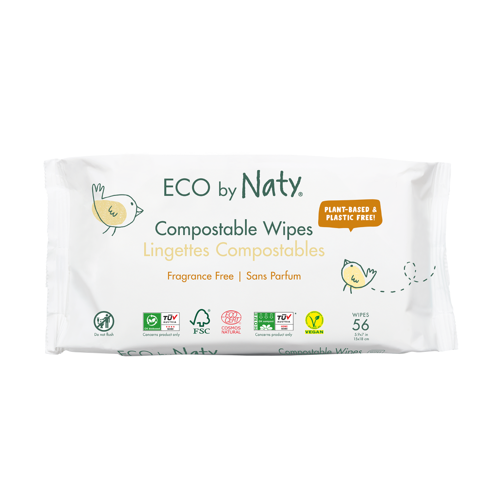 Ekologické ubrousky Eco by Naty jsou vyrobené z 99,5 % z přírodních zdrojů a jsou zcela rozložitelné a kompostovatelné. Obsahují 98,4 % vody a za pouhých 12 týdnů se kompletně rozloží.