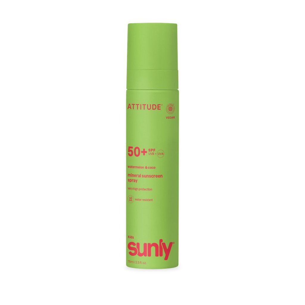Dětský minerální opalovací krém ve spreji ATTITUDE Sunly (SPF 50) s vůní melounu a kokosu 75 ml