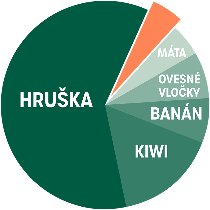 Složení: *hruškové pyré 65 %, *kiwi pyré 20 %, *banánové pyré, *ovesné vločky, *máta, *spirulina 0,04 %. *z ekologického zemědělství.