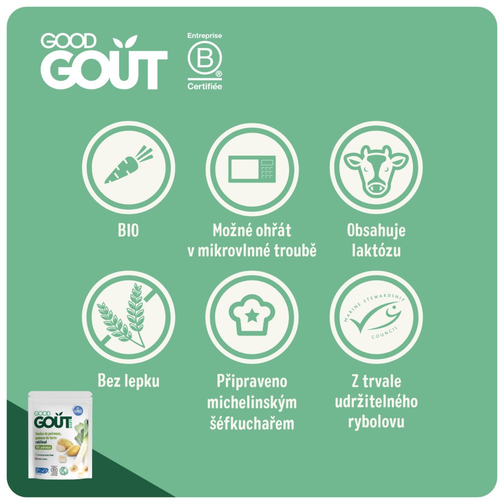 Good Gout BIO Pórek s brambůrkem a treskou (190 g), exp. 21.05.2026