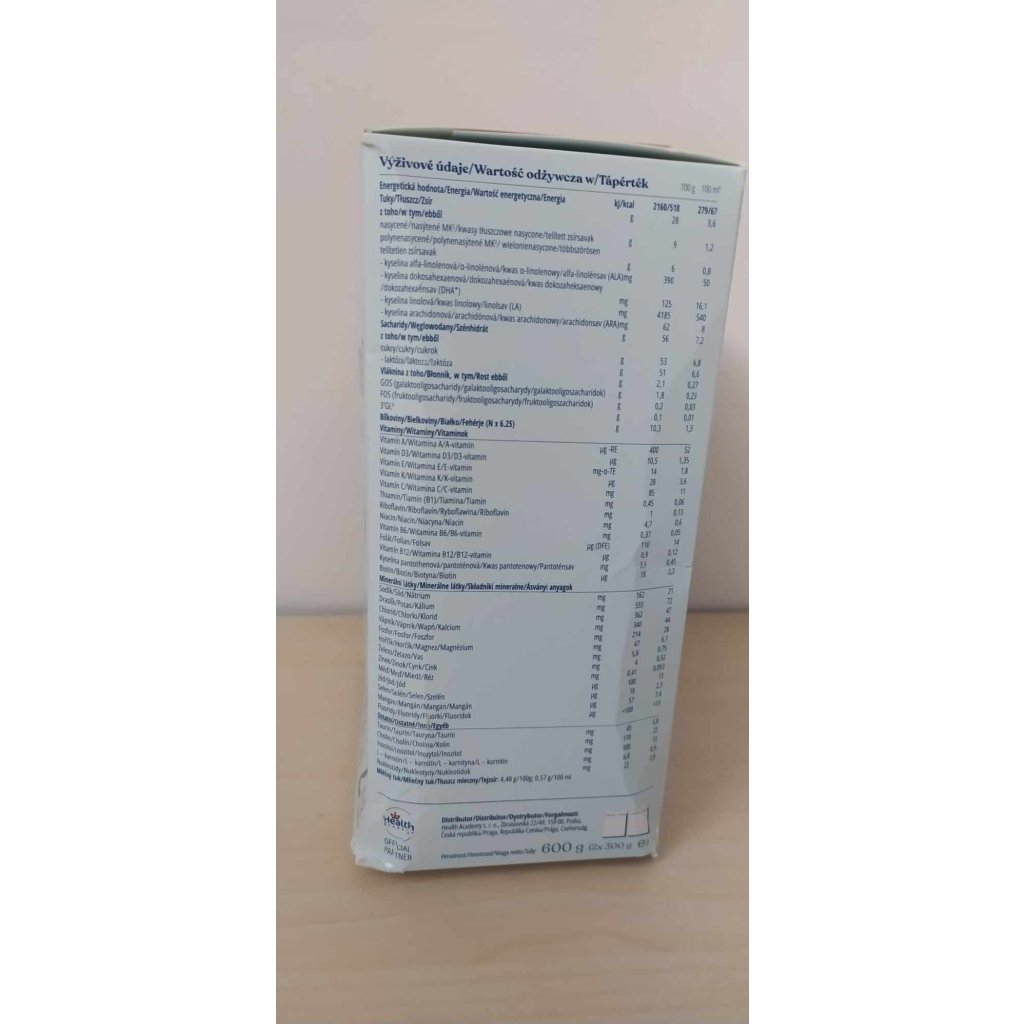 1 Obsahuje DHA (jak požadují právní předpisy pro veškerou kojeneckou výživu. DHA (neboli kyselina dokosahexaenová) je polynenasycenou mastnou kyselinu s dlouhým řetězcem, která patří mezi omega-3 mastné kyseliny, která je produkována mikrořasami a nalezneme ji také u všech zvířat, které se těmito řasami živí. Omega 3 patří k esenciálním mastným kyselinám, které si tělo samo nedokáže vyrobit a je tak odkázáno na vnější příjem (většinou stravou).