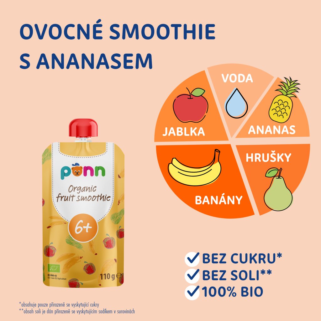 SALVEST Põnn BIO Ovocné smoothie s ananasem (110 g), exp. 9. 11. 2025