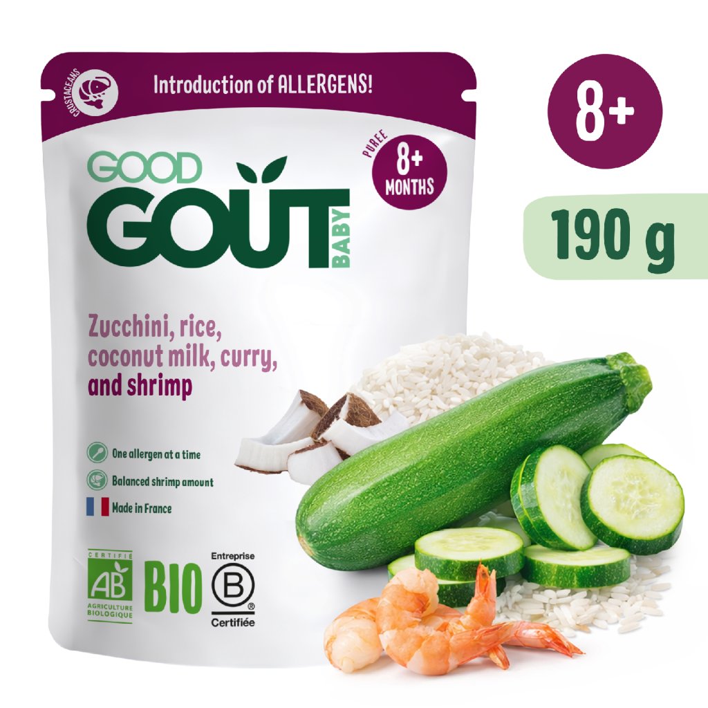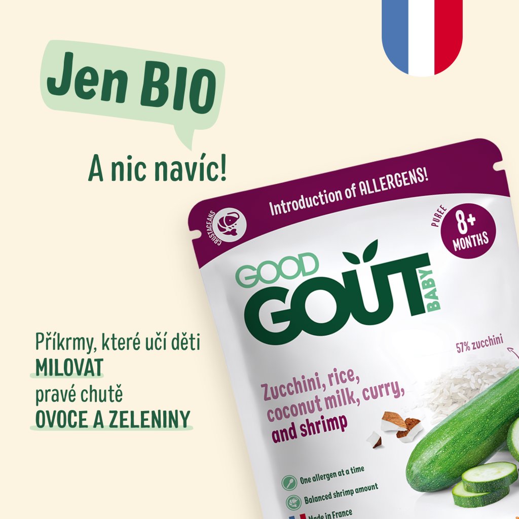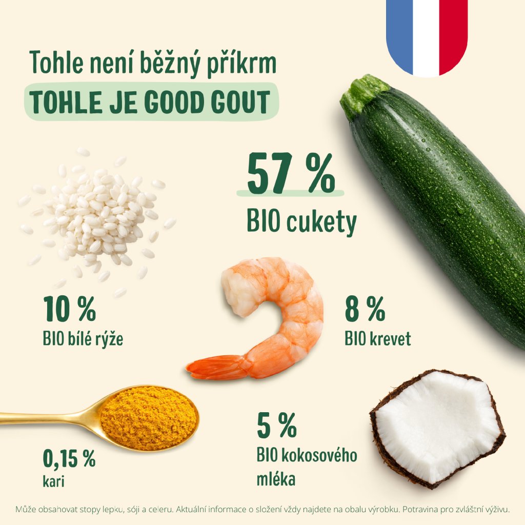 Good Gout BIO Krevety s rýží, cuketou a kokosovým mlékem (190 g), exp. 05.06.2026
